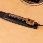 פיק-אפ מתוצרת KNA המונח על הגשר ועליו נקשרים המיתרים. אין צורך לחורר את הגיטרה בעת ההתקנה.