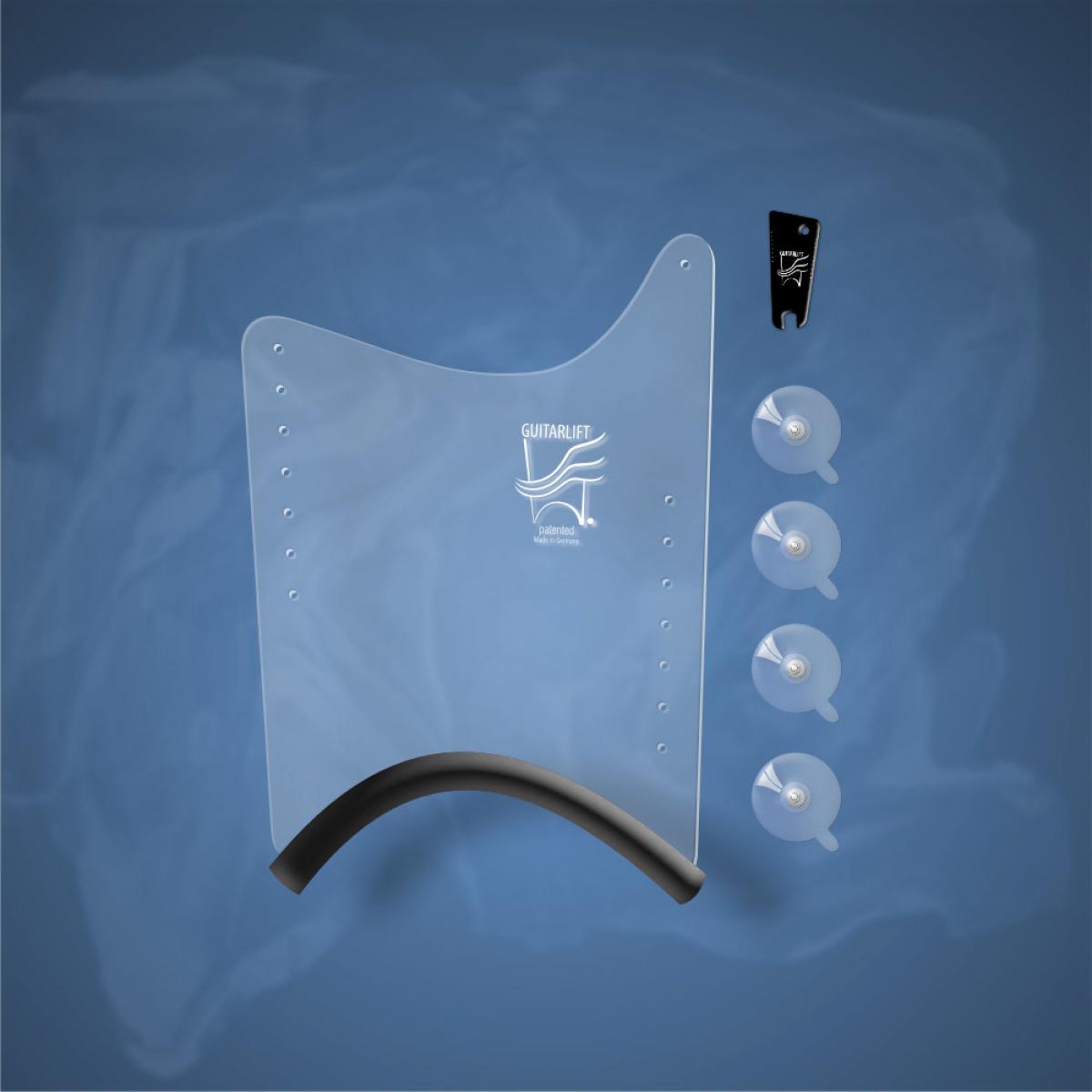 "האם אתה מחפשים משענת גיטרה שתתאים לכם, יציבה, אמינה ונראית טוב? אז אל תחפשו יותר –Guitarlift®!" זהו מותג חדש מתחום התמיכה לגיטרה, שאמור להחליף את הרגלית, או כל התקן אחר שנגני הגיטרה משתמשים בו לצורך קירוב הכלי אל הגוף. הפטנט הוא מיוחד בפשטותו ומאידך באפשרויות ובפתרונות שהוא מציע. במקום להציב את הגבהת הגיטרה מתחת לכלי, המתקן הזה מתחבר אליה מהצד, מה באופן מידי מרחיב את אפשרויות השימוש בו. כך זה נראה: זהו מדף עשוי פלכסיגלאס, מחורר משני צדי האורך. שם, בחורים ממוקמות פטריות ואקום, חזקות ומקובעות בעזרת אום. בתחתית ישנו חתך דמוי סהר, מרופד היטב, שבסופו של דבר הוא זה שנח על ירך המנגן. הפטנט הזה מאפשר למקם את הגיטרה בכל זווית אפשרית. ובכל גובה רצוי. ניתן לשנות את מיקום נקודות הואקום, לסמן נקודות קבועות להצבת המשענת הזאת בלי לפגוע באסתטיקה של הכלי. כל האפשרויות על השולחן. זה גם יתאים במיוחד לאלה שרוצים כמה שפחות לגעת בכלי בעת הנגינה, המדף הזה יוצר חיץ בין גוף הנגן לגוף הגיטרה. ורסטיליות זה שם המשחק בפטנט הזה. תוצרת גרמניה.